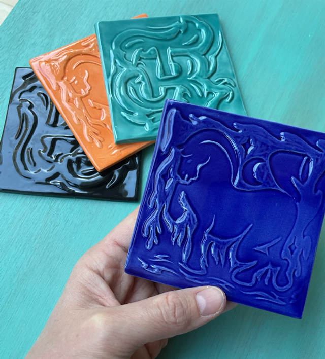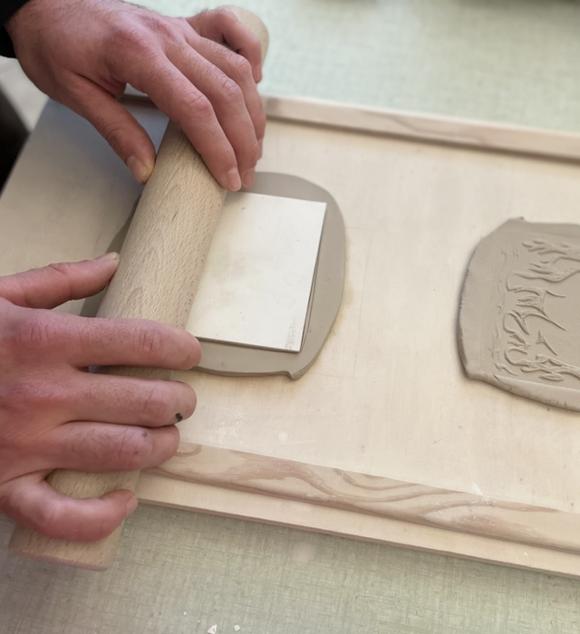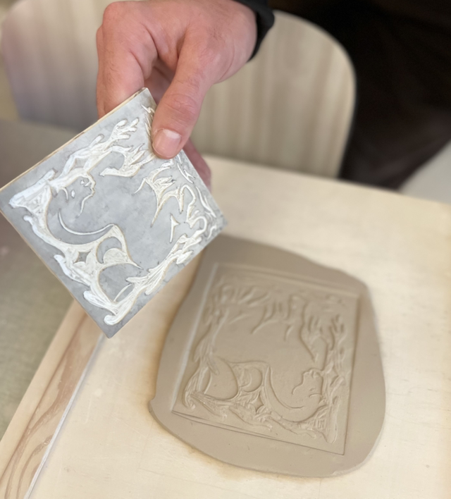 -Nous utiliserons ensuite la technique de la plaque en modelage pour pouvoir y estamper votre lino et produire un carreau en relief.