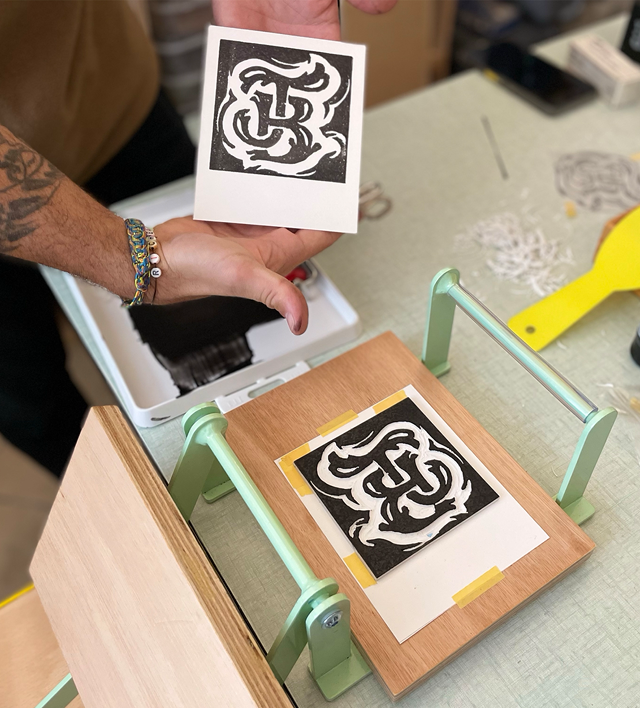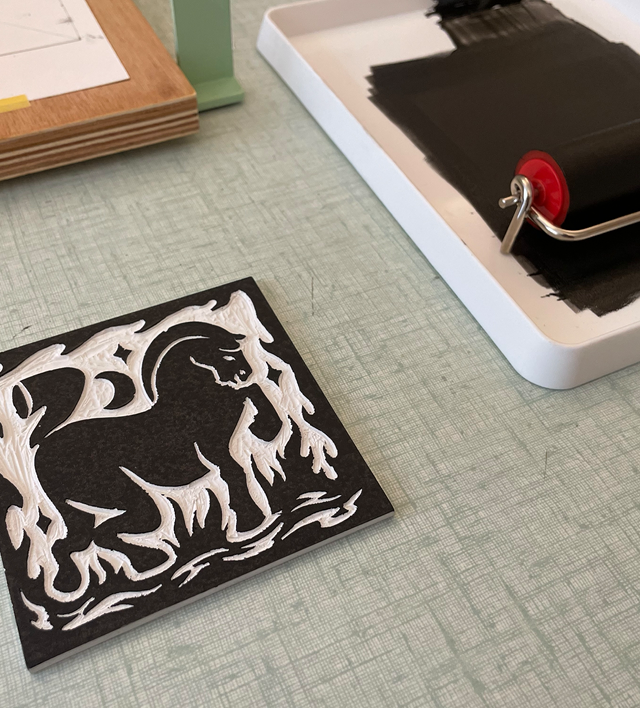 -Vous réaliserez un premier estampage de votre linogravure sur papier pour réaliser un tirage qu’on appelle « linogravure ».